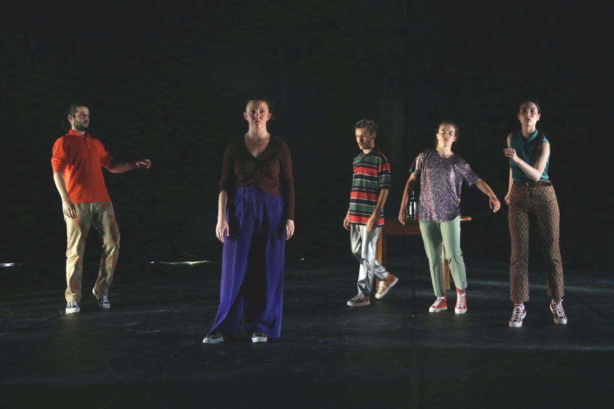 de gauche à droite : Sébastien Dalloni, Suzanne Dubois, Sim Peretti, Thaïs Weishaupt, Juliette Tardif © Xavier Cantat